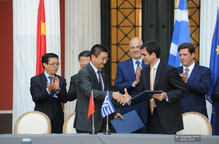 6月19日,中国企业代表团到访希腊。当晚,中希商务协议签约仪式在雅典扎皮宫举行。在中国国家发改委主任徐绍史、商务部长高虎城、希腊发展和竞争力部部长及海运部长的共同见证下,中粮酒业与拥有130多年葡萄酒酿造历史的希腊博塔利(BOUTARIS)公司签署战略合作协议,成为博塔利在中国的唯一合作伙伴,为中国消费者提供纯正的、原产地直采的希腊美酒。