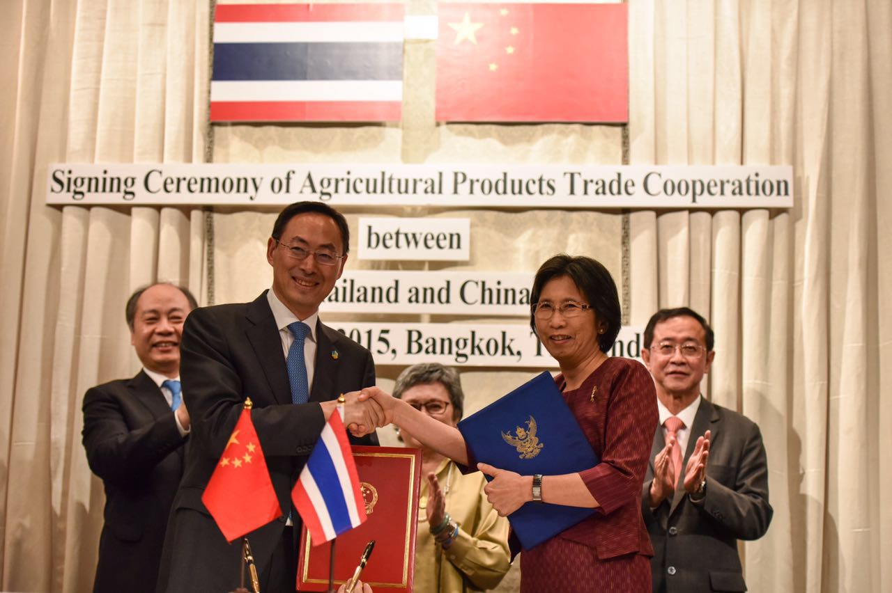12月3日,在国家发改委副主任王晓涛和泰国商业部部长Mrs. Apiradi Tantraporn的共同见证下,集团总裁于旭波与泰国商业部外贸厅厅长Mrs Duangporn Rodphaya在曼谷签署了100万吨泰国大米进口合同。